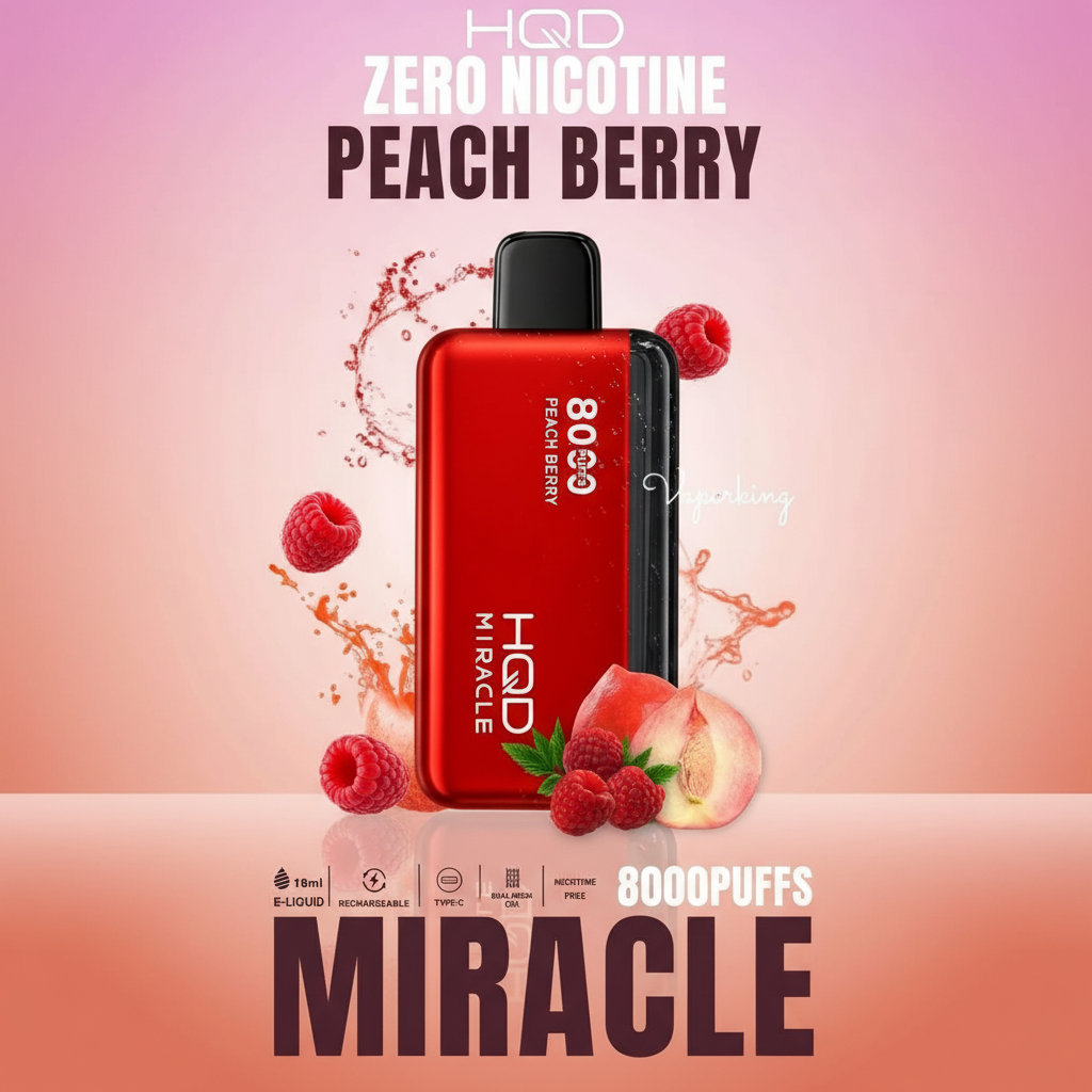 The Peach Berry HQD Miracle 8000 Puffs Zero Nicotine combines the fruity sweetness of ripe peaches with the tangy taste of mixed berries. Pre-filled and disposable, it’s ideal for adult vapers who want a flavorful, hassle-free, nicotine-free experience anytime.